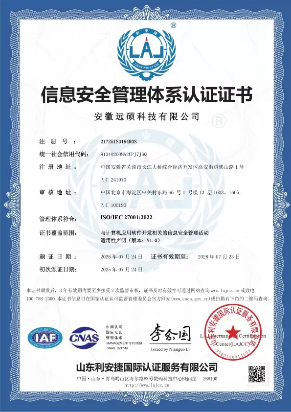安徽远硕科技有限公司(下文简称“我们”)非常重视用户的隐私和个人信息安全保护,我们将按照法律法规要求,采取相应安全保护措施,尽力保护您的用户信息安全可控。